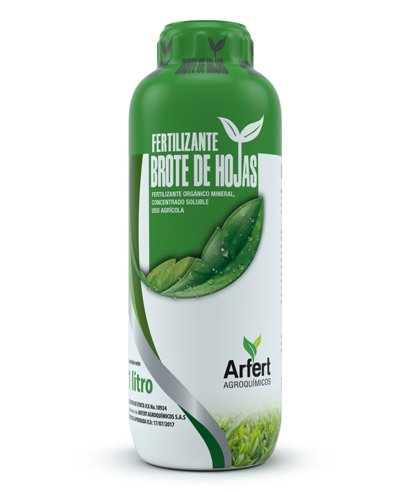 BROTE DE HOJAS participa en la optimización de la actividad fotosintética, su mezcla ideal de carbono orgánico lo hace un fertilizante foliar de gran absorción y translocación de nutrientes, lo que permite tener mayor respuesta a la fertilización en cualquieretapa del cultivo. BROTE DE HOJAS adicional al aumento de hojas y estructuras vegetativas, las hace más fuertes, resistentes y flexibles debido al trabajo que realiza la combinación de NITROGENO y CALCIO.